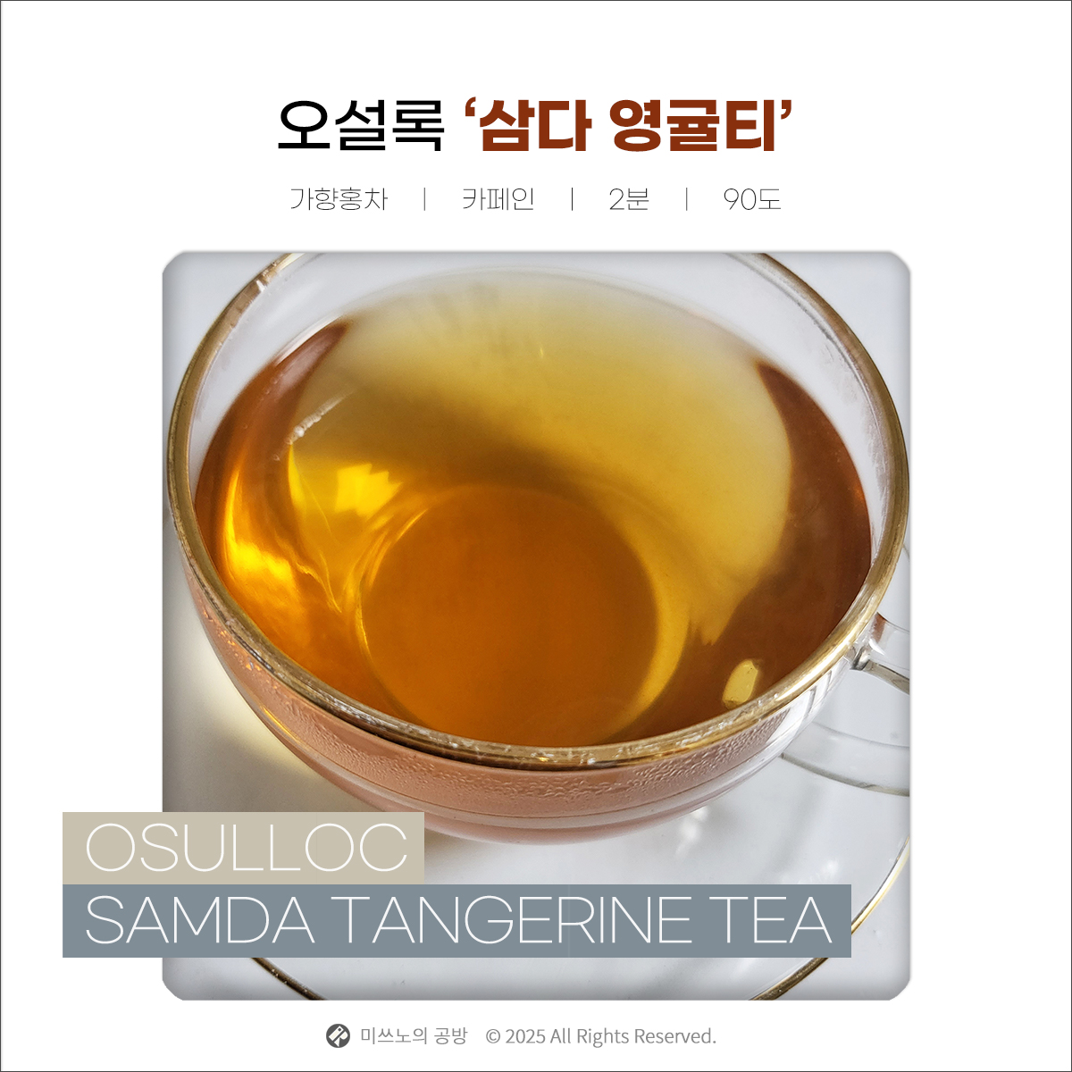 오설록 제주 삼다 영귤티는 가볍고 부드러운 홍차에 영귤향이 살짝 더해진 차입니다.