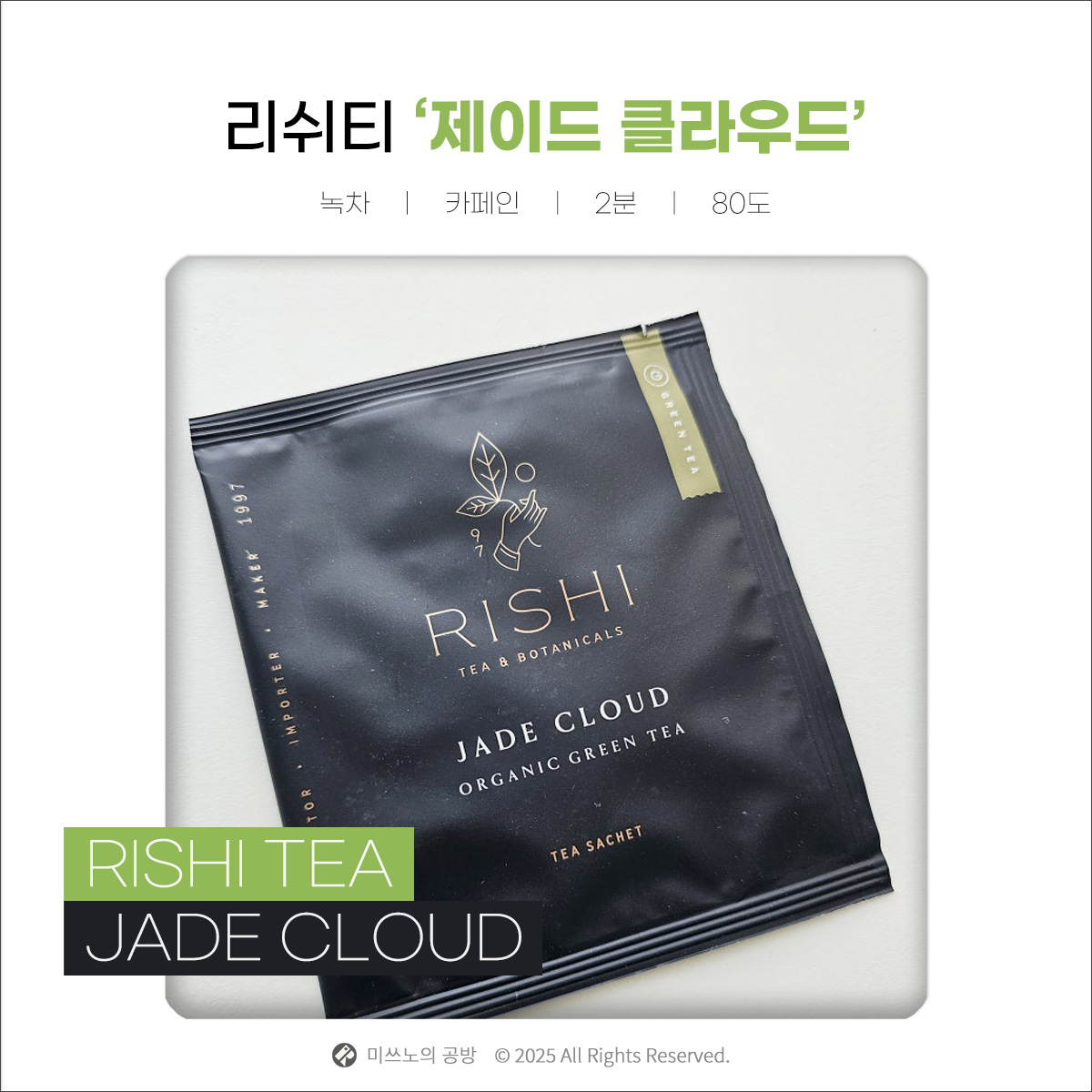 리쉬티 제이드 클라우드 리뷰 - 신선한 풀내음이 매력적인 유기농 녹차