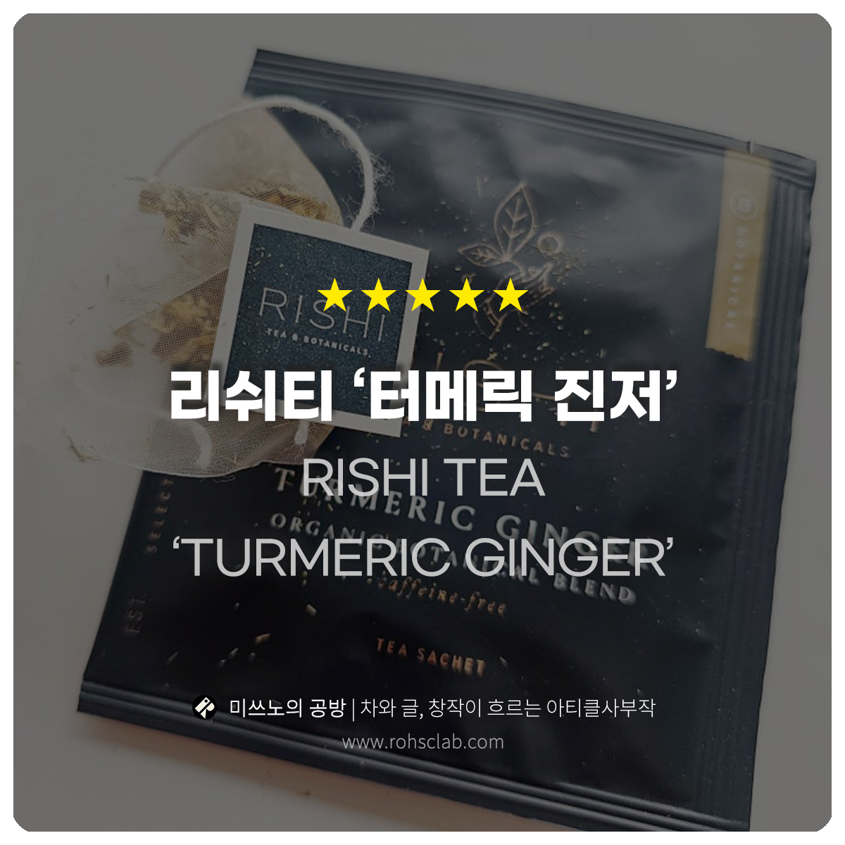 리쉬티는 자연 친화적인 유기농 블렌딩으로 유명한 브랜드로, 터메릭 진저는 강황과 생강을 주재료로 하여 몸을 따뜻하게 하고 면역력을 높이는 차로 사랑받고 있습니다.