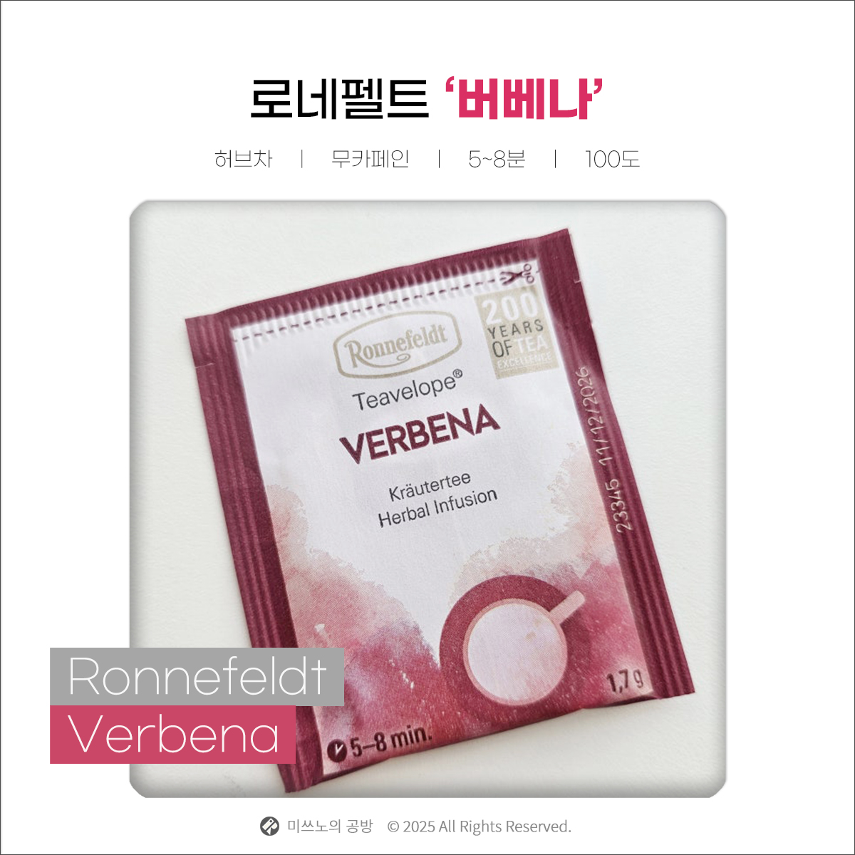 은은한 감초의 단맛과 미묘한 상쾌함이 조화로운 로네펠트 버베나(Ronnefeldt - Verbena).