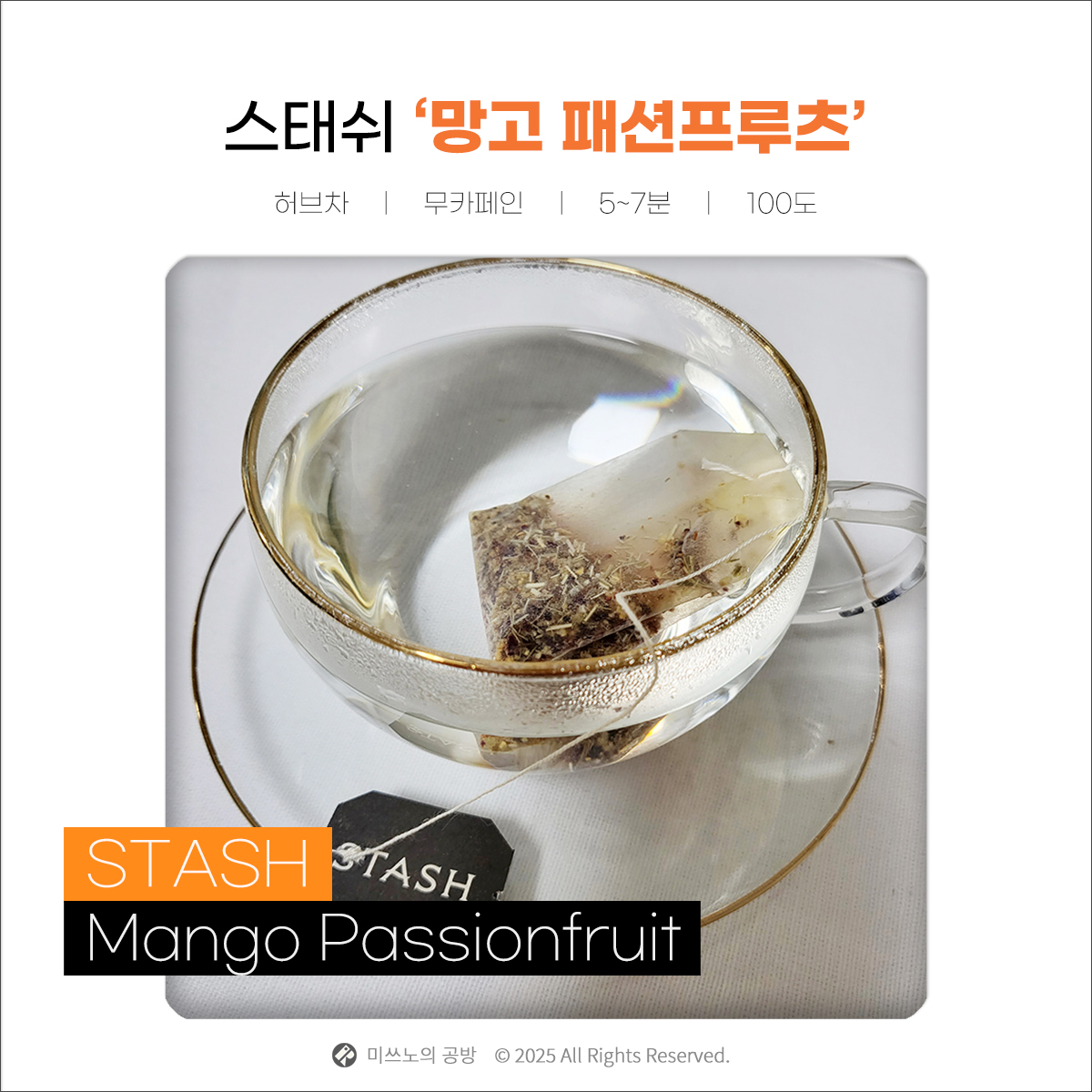 과일차를 좋아하는 분이라면 스태쉬 망고 패션프루츠(STASH-Mango Passionfruit)는 꼭 한 번 경험해볼 가치가 있습니다.