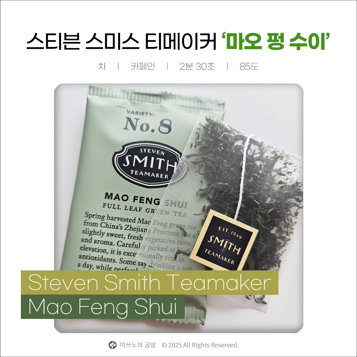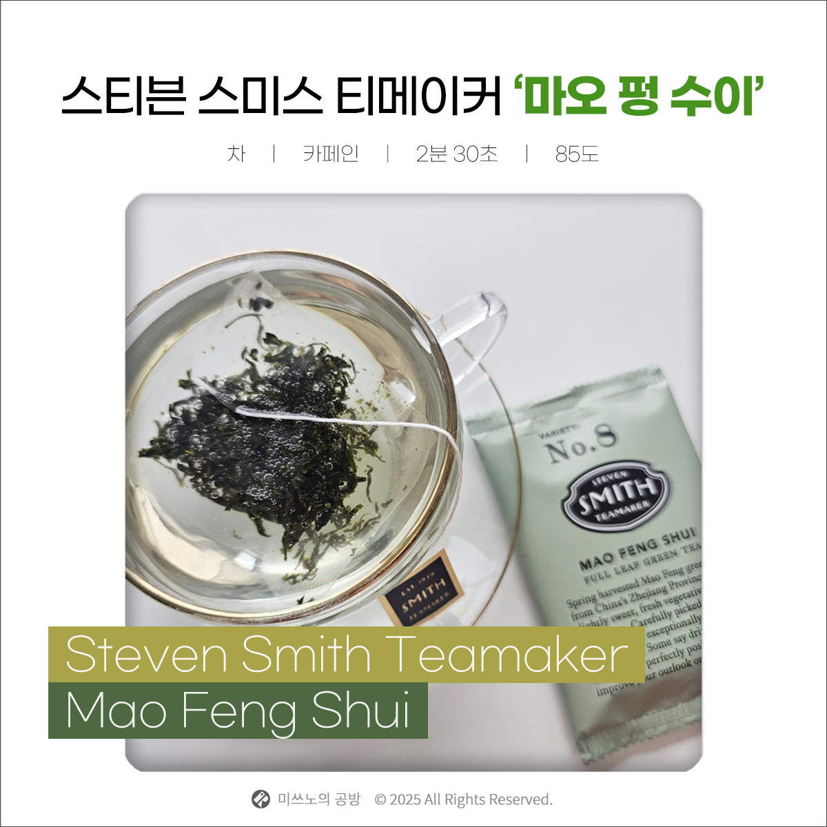 스티븐 스미스 티메이커 마오 펑 수이는 부드러운 꽃향과 맑은 녹차의 조화가 특징입니다.