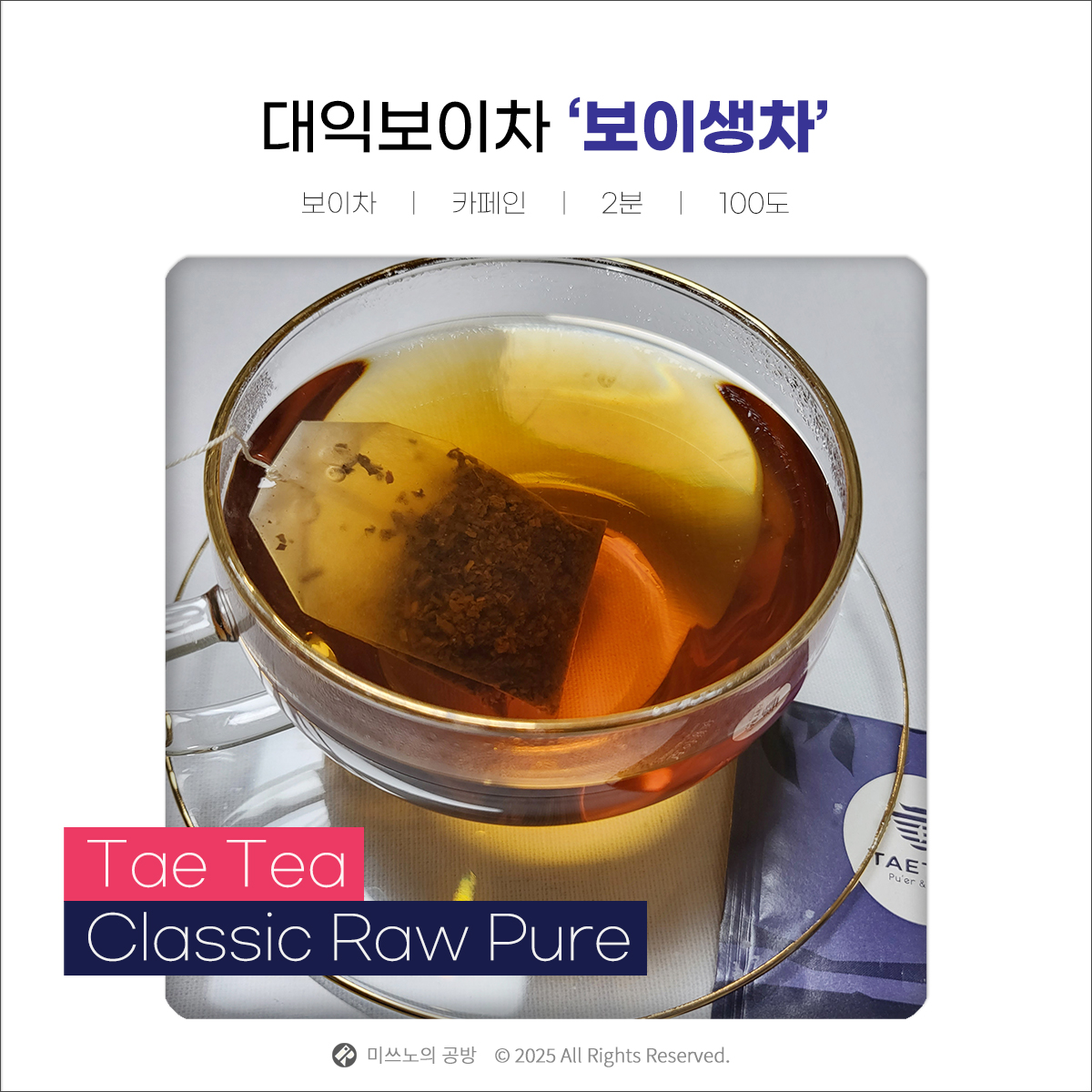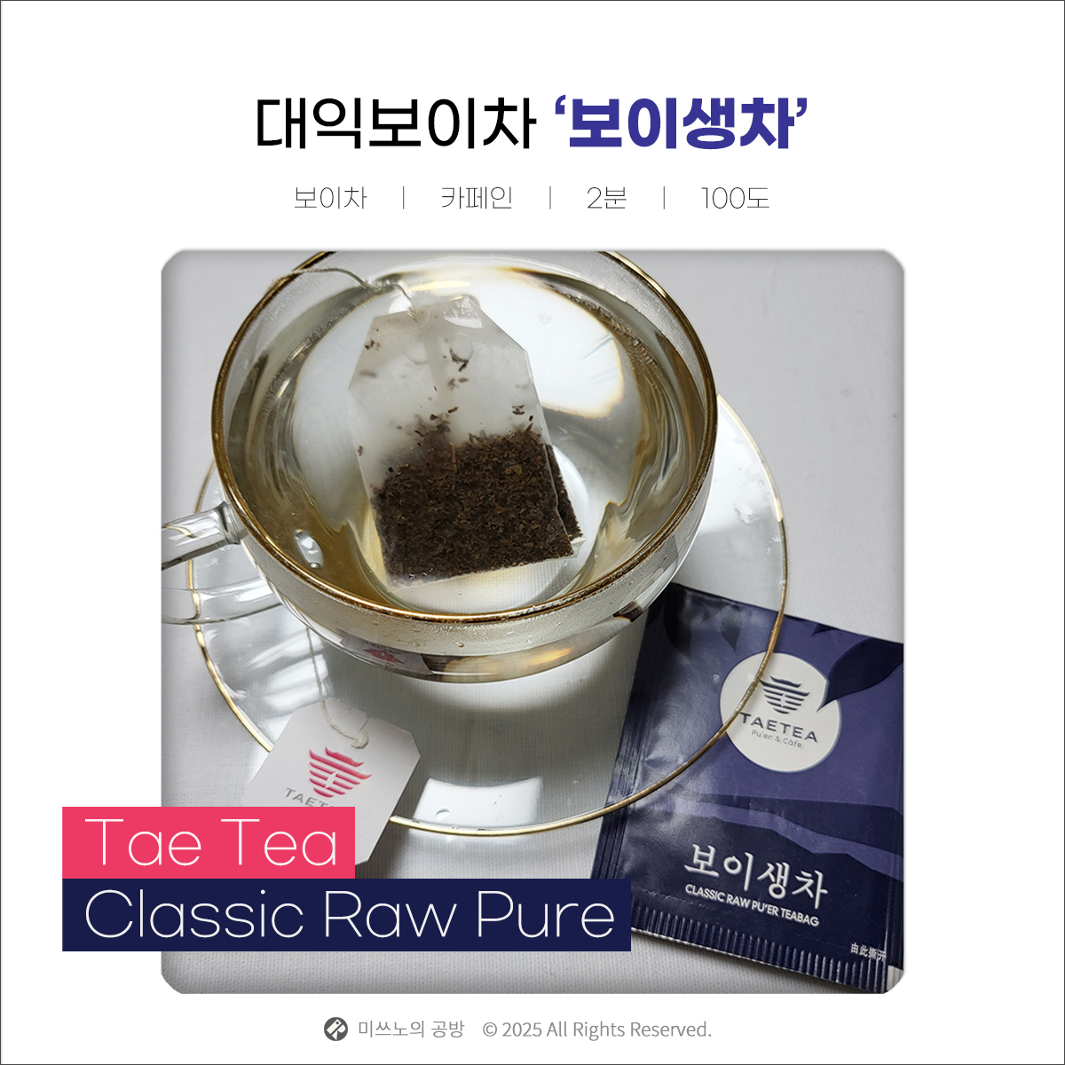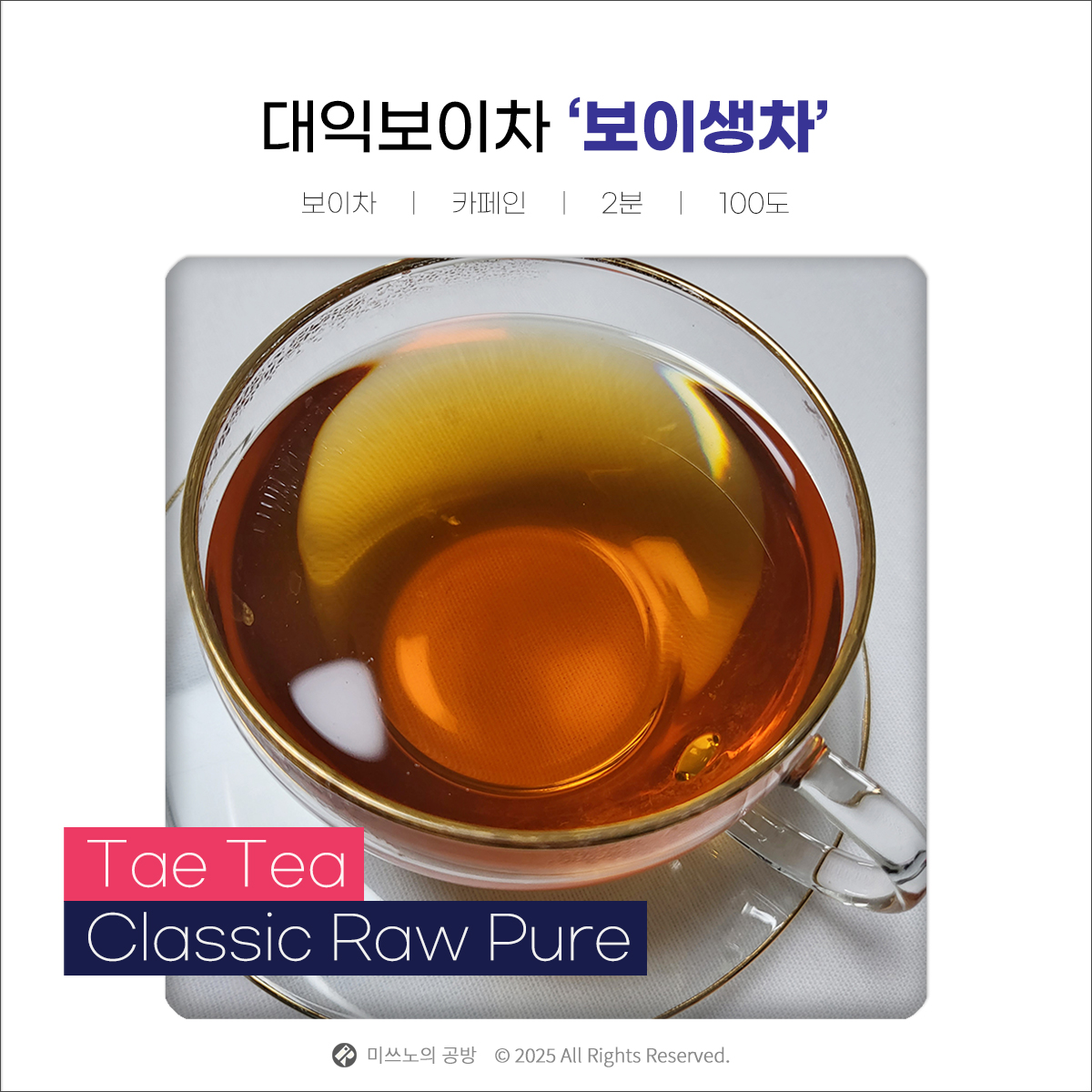 세계 보이차 시장을 선도하는 대익보이차(Tae Tea)에서 선보이는 보이생차 티백은, 전통적인 보이차를 간편하게 즐길 수 있도록 티백 형태로 제작된 제품입니다. 오늘은 보이생차 티백의 특징과 향, 맛, 그리고 추천하고 싶은 분들까지 자세히 살펴보겠습니다.